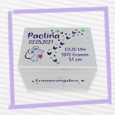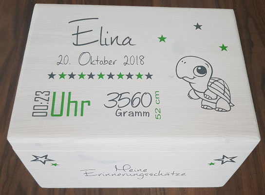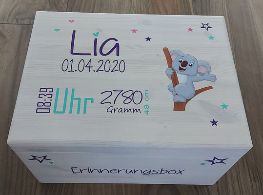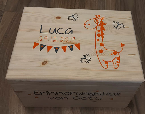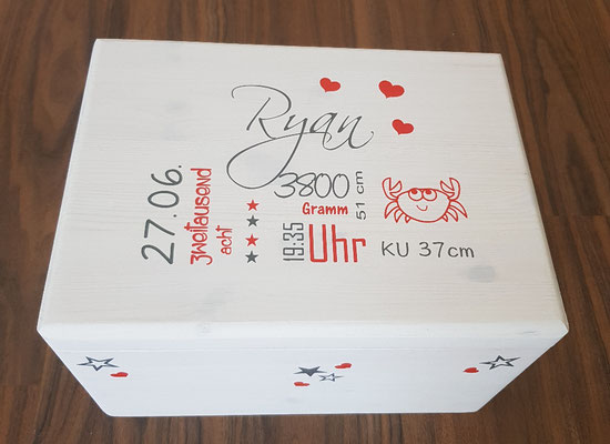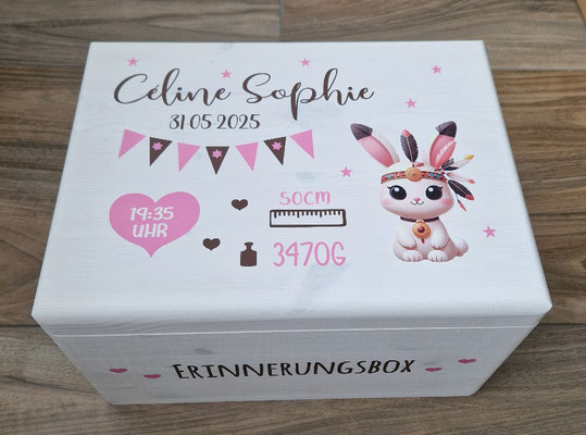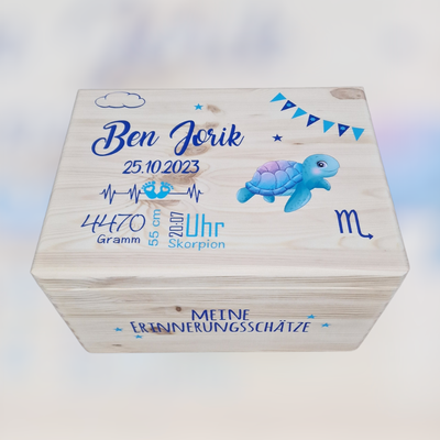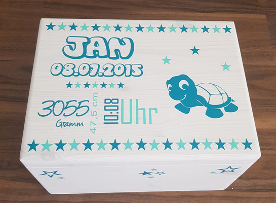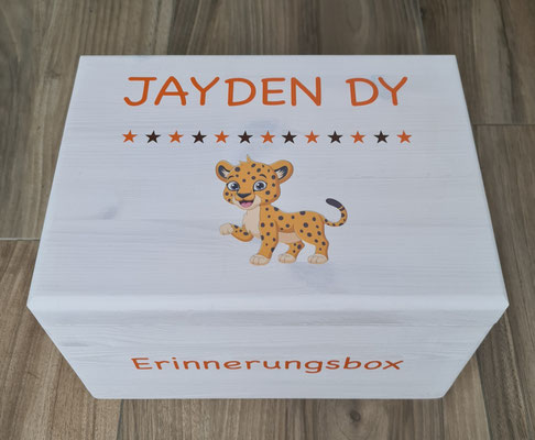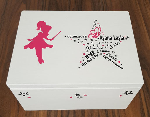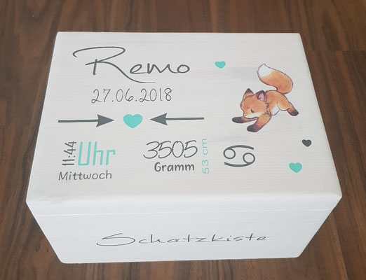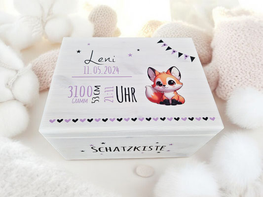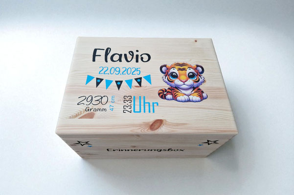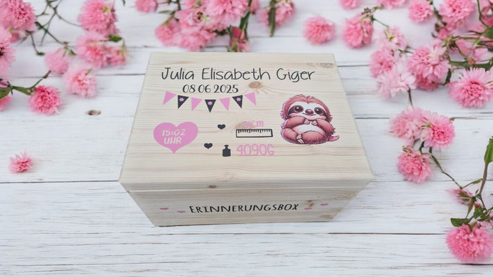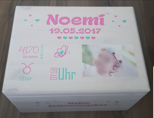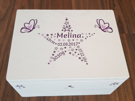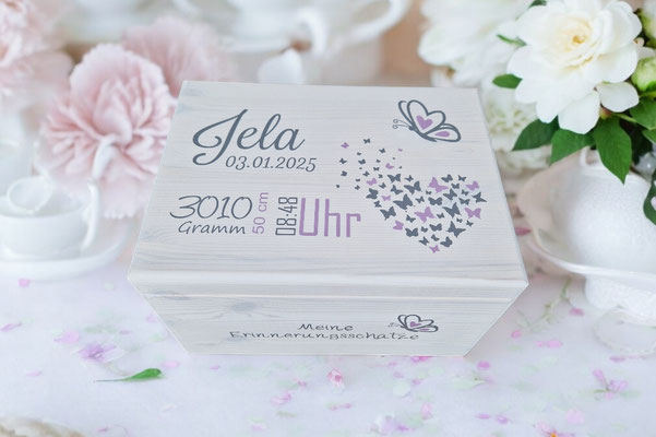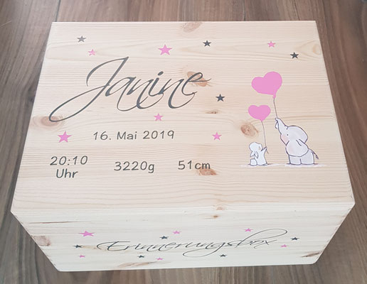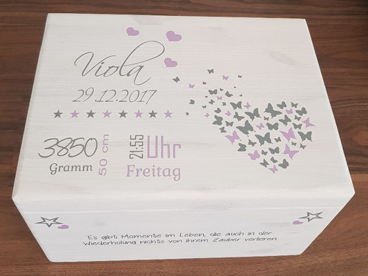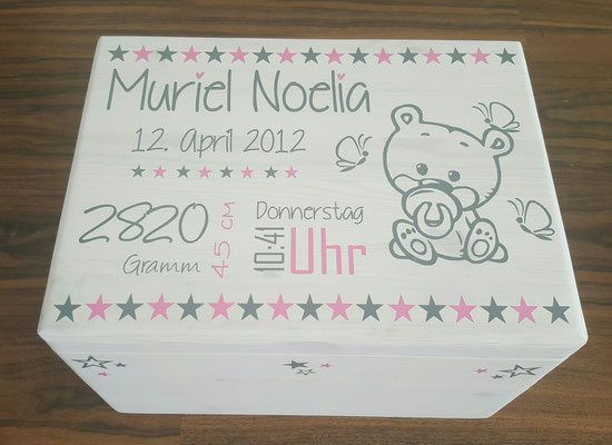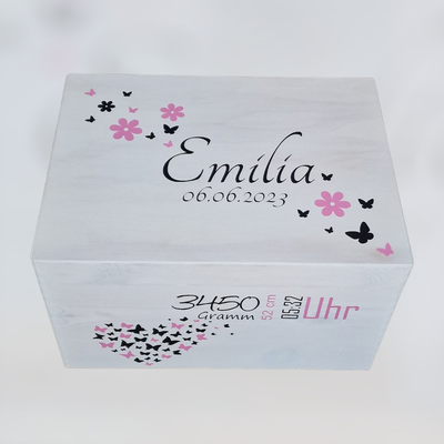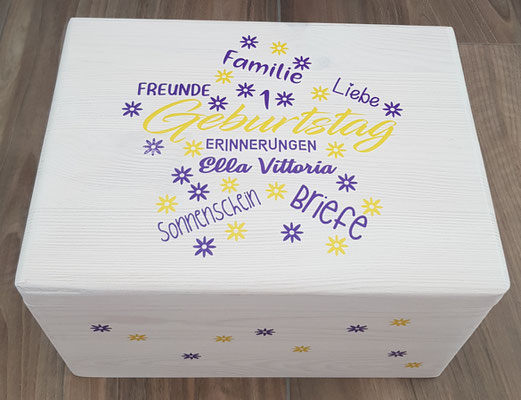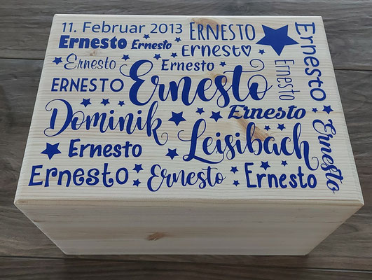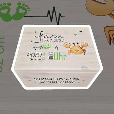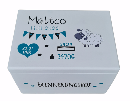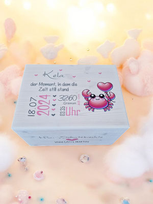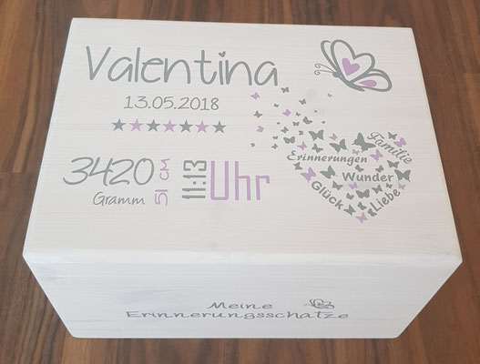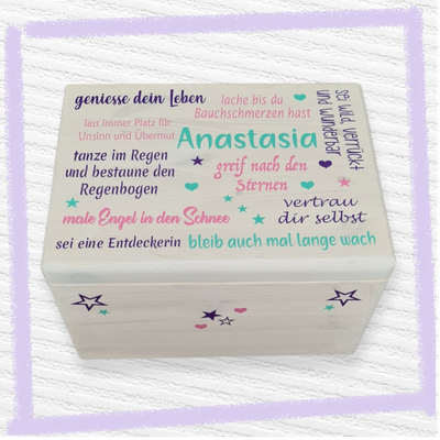 In dieser tollen Holzbox findet alles seinen Platz, was im Leben eures Kindes von Bedeutung ist. Sei es der erste Nuggi, Schuhe, die Spieluhr, das Lieblingsnuscheli, die GlĂŒckwunschkarten zur Geburt, Taufe oder Geburtstag.