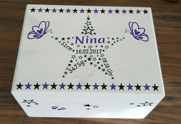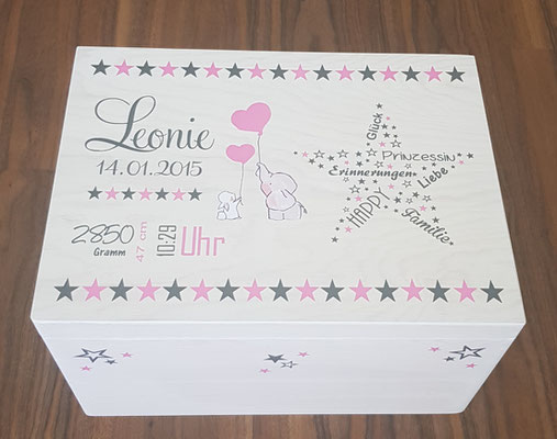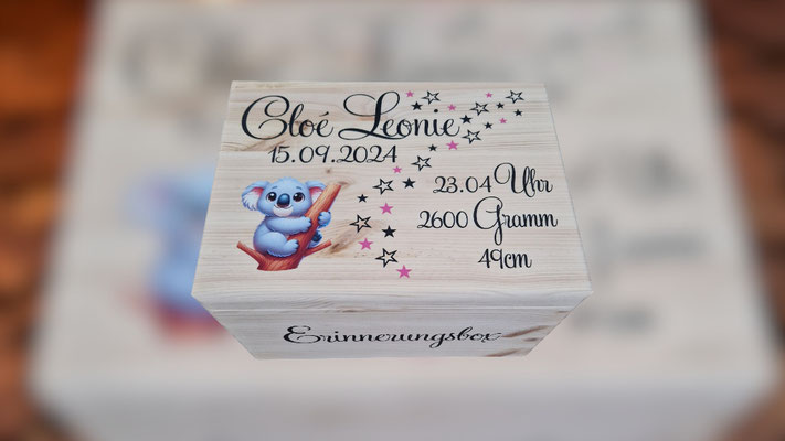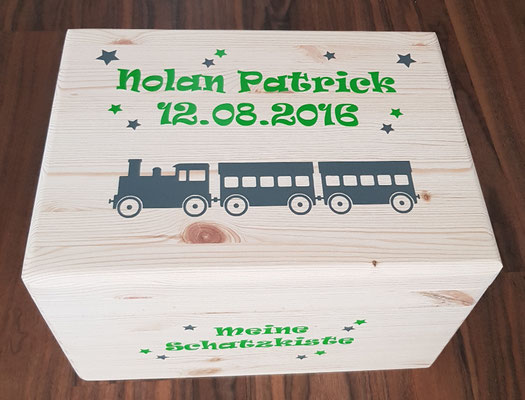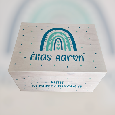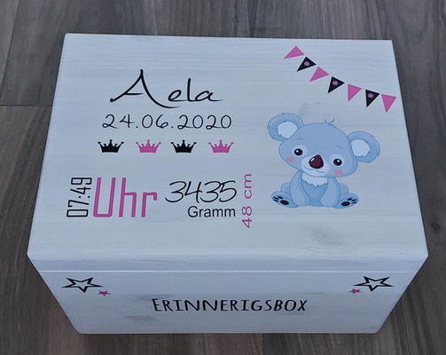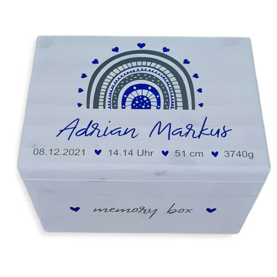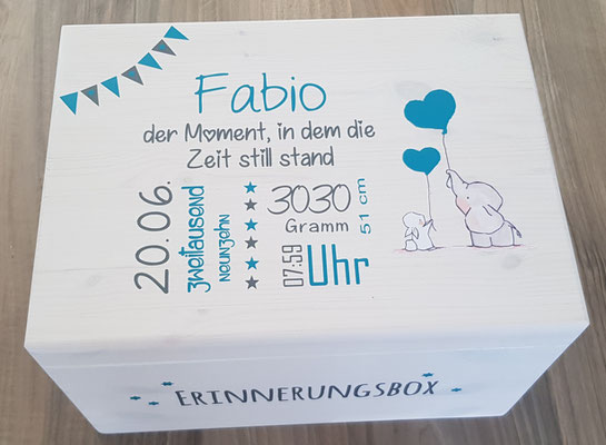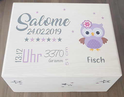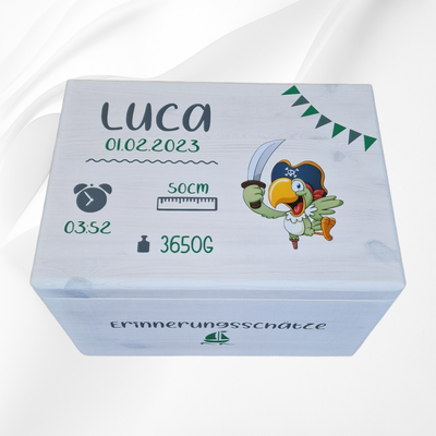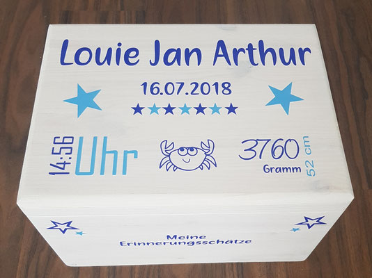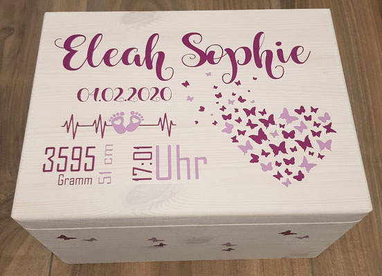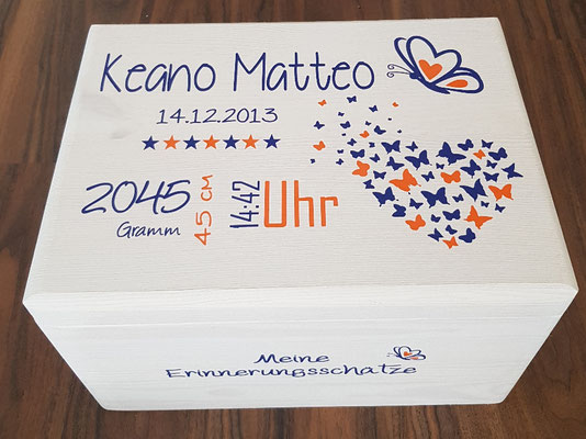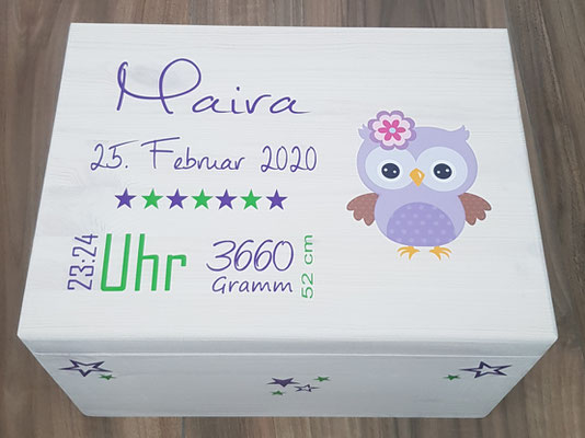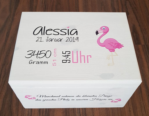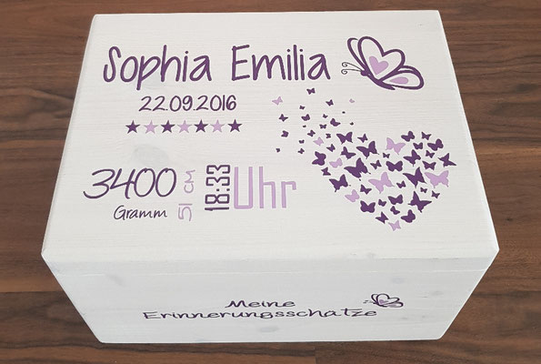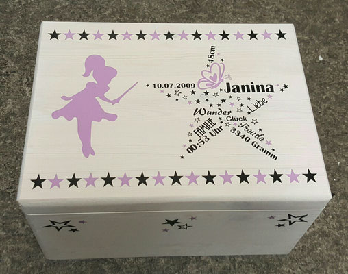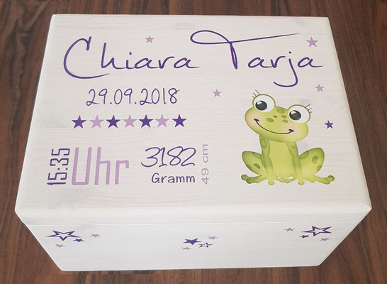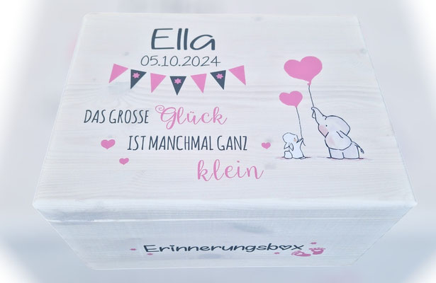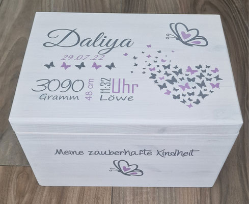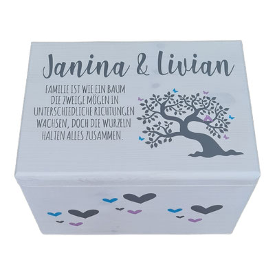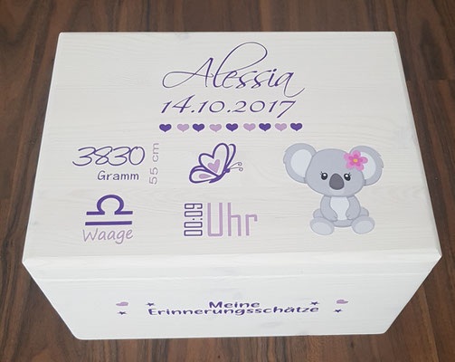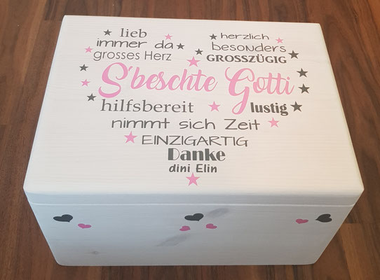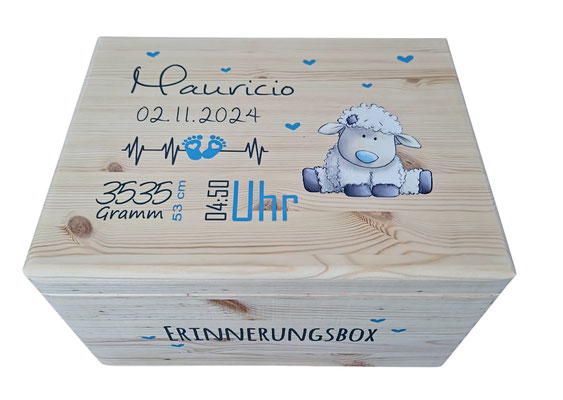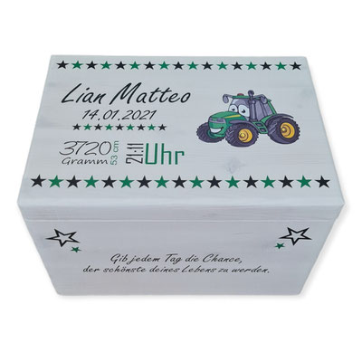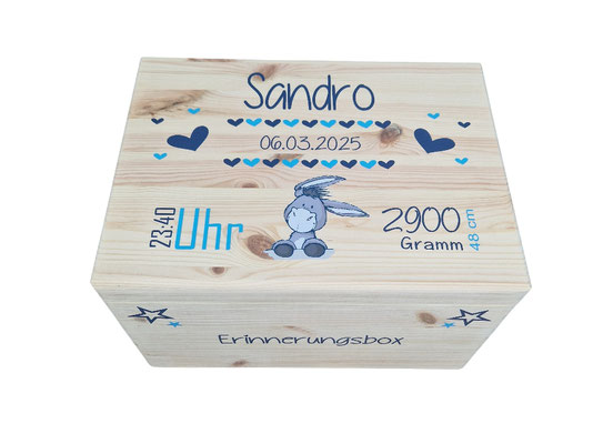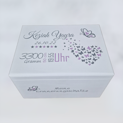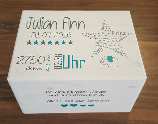 In dieser tollen Holzbox findet alles seinen Platz, was im Leben eures Kindes von Bedeutung ist. Sei es der erste Nuggi, Schuhe, die Spieluhr, das Lieblingsnuscheli, die GlĂŒckwunschkarten zur Geburt, Taufe oder Geburtstag.