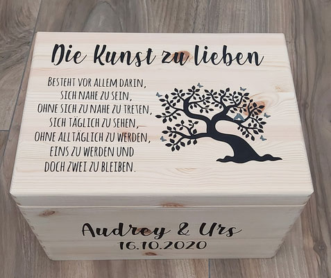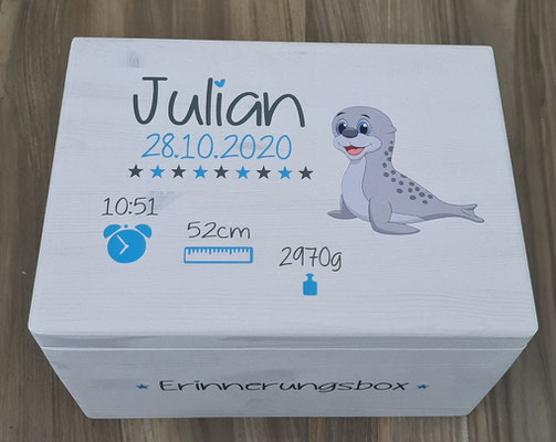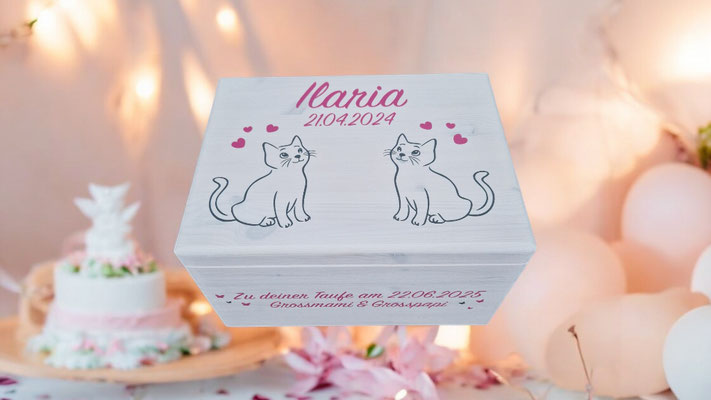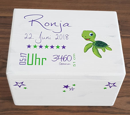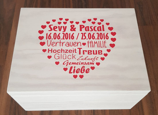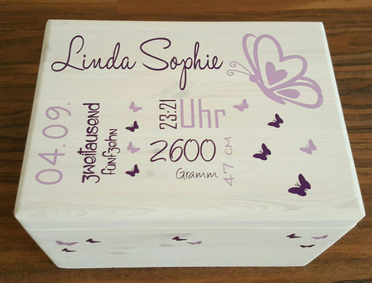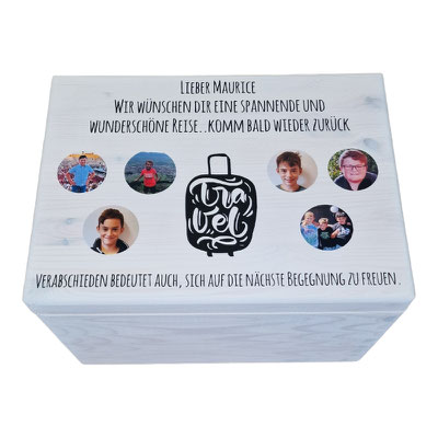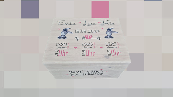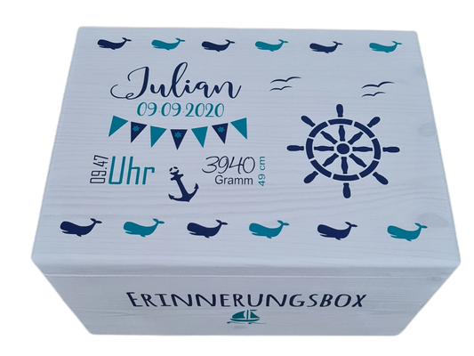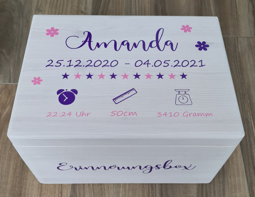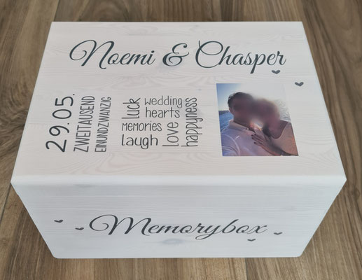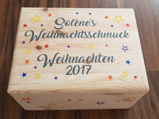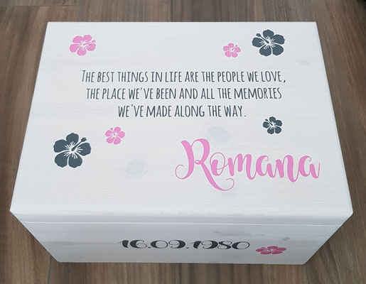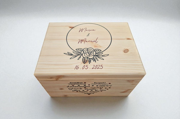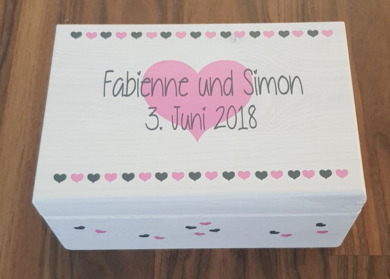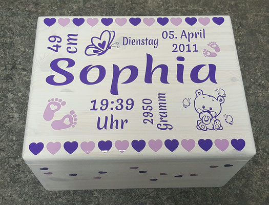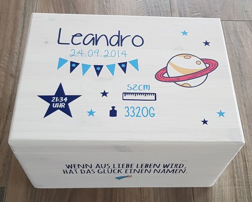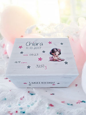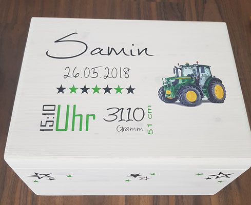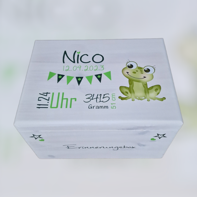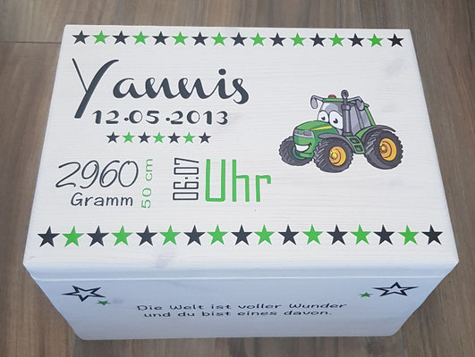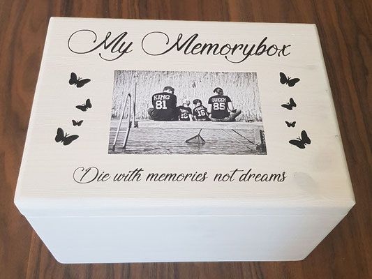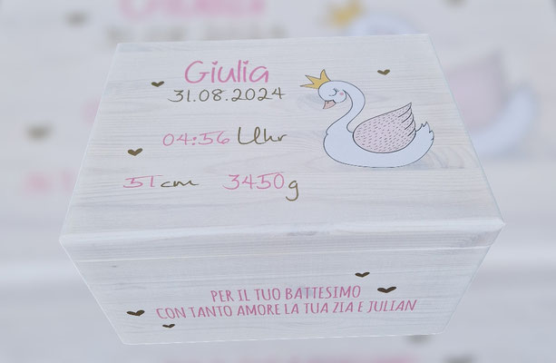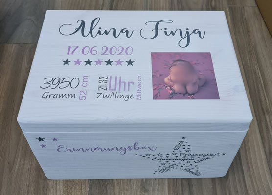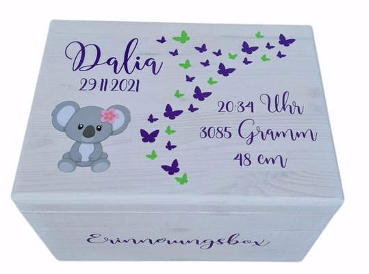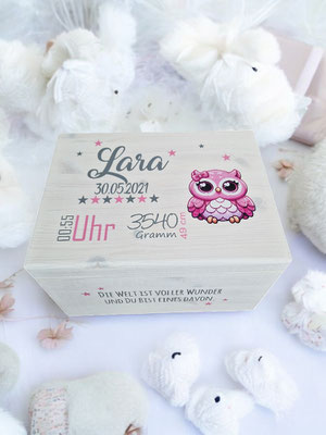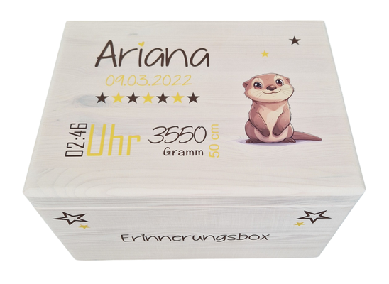 In dieser tollen Holzbox findet alles seinen Platz, was im Leben eures Kindes von Bedeutung ist. Sei es der erste Nuggi, Schuhe, die Spieluhr, das Lieblingsnuscheli, die GlĂŒckwunschkarten zur Geburt, Taufe oder Geburtstag.