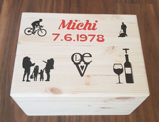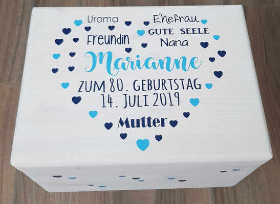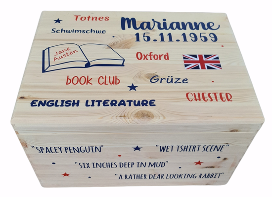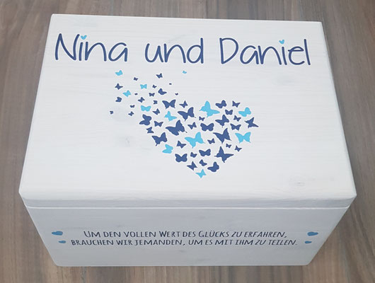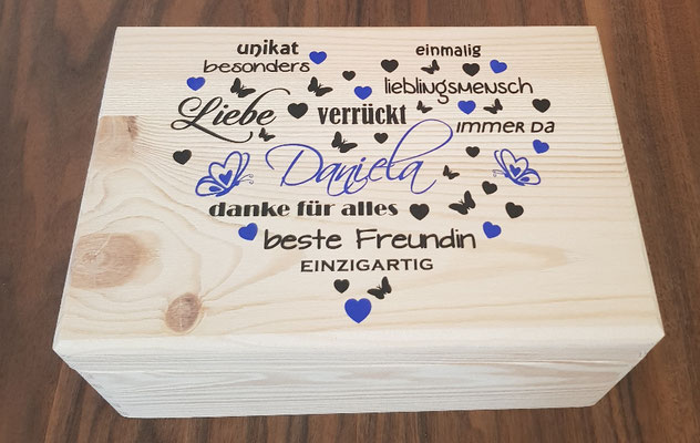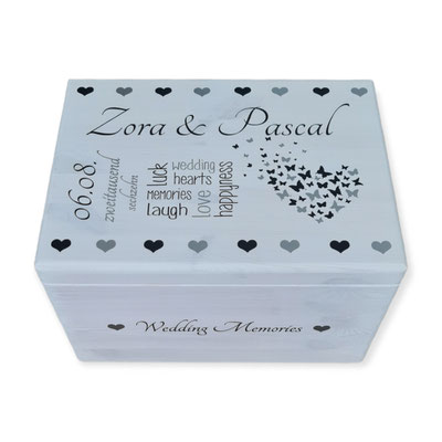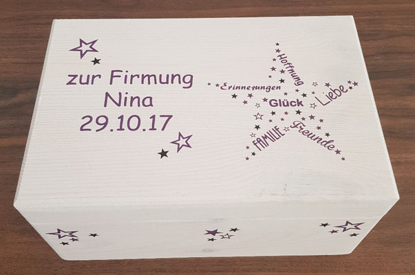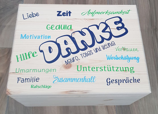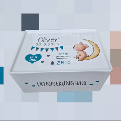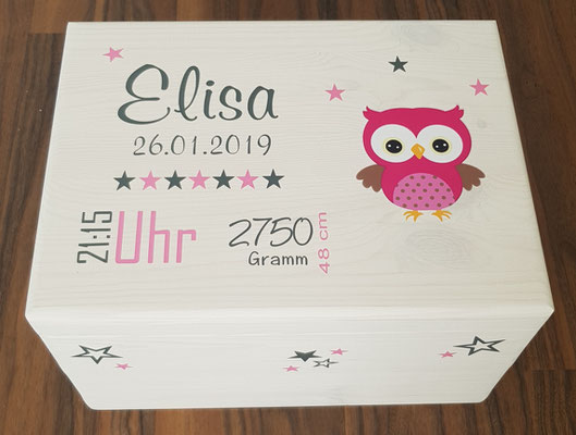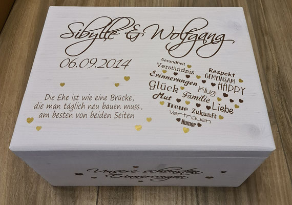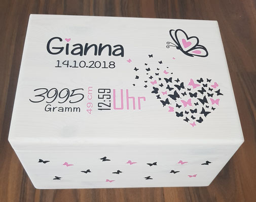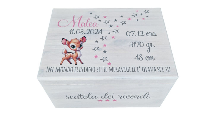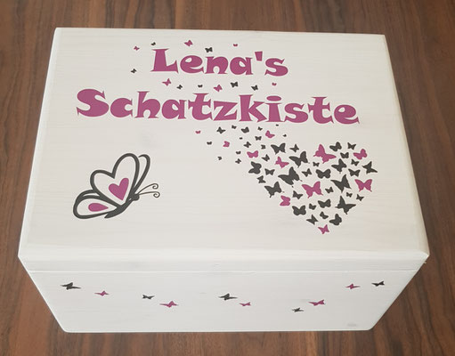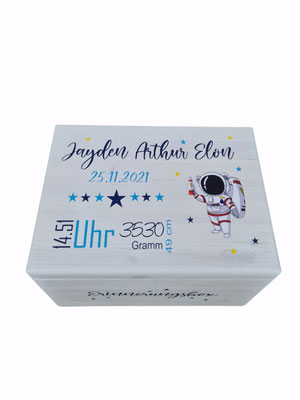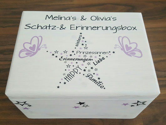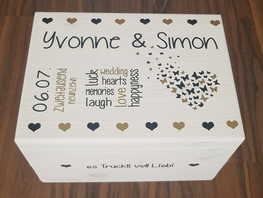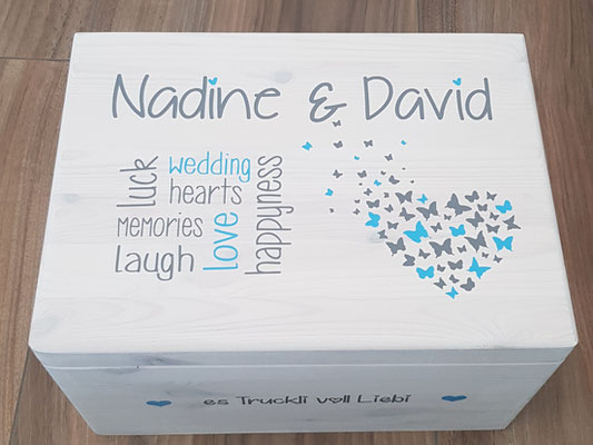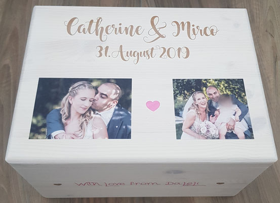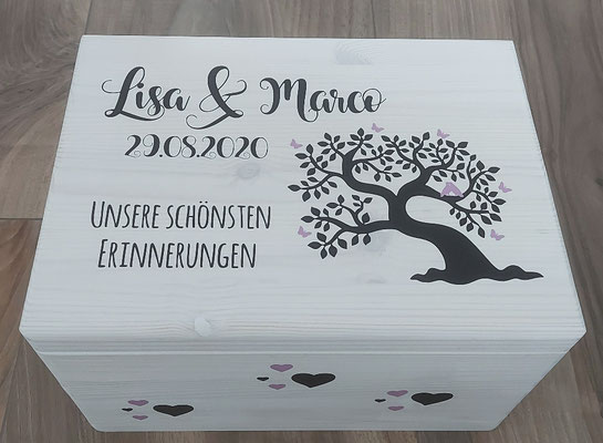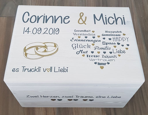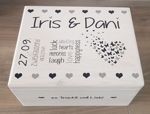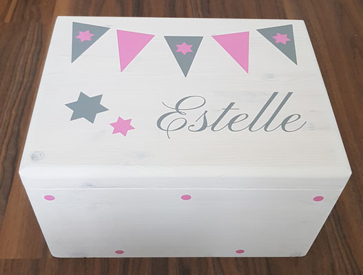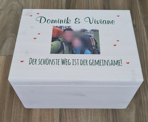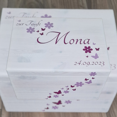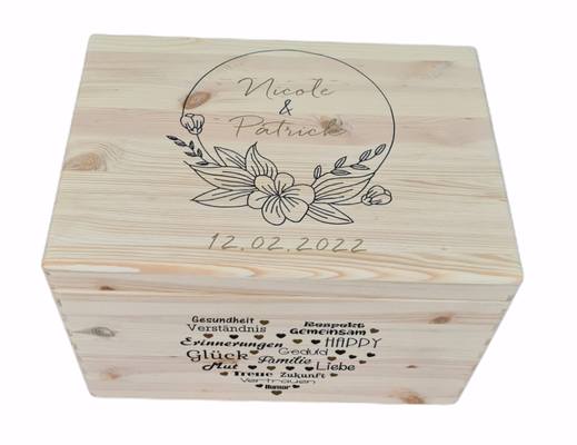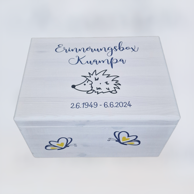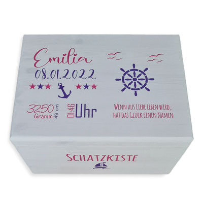 In dieser tollen Holzbox findet alles seinen Platz, was im Leben eures Kindes von Bedeutung ist. Sei es der erste Nuggi, Schuhe, die Spieluhr, das Lieblingsnuscheli, die GlĂŒckwunschkarten zur Geburt, Taufe oder Geburtstag.