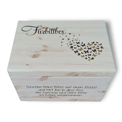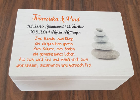 Hinweis Holzbox: Bitte beachte, das Holz ein Naturprodukt ist und ich ĂŒber die HerstellungsqualitĂ€t keinen Einfluss habe. (Schweizer Produkt) Die Naturboxen lese ich alle von Hand aus. Da es sich um Naturboxen handelt, kann es jedoch kleine Fasern, Löcher oder Strukturen enthalten. Das Holz arbeitet und somit habe ich auch keinen Einfluss auf das evtl. verziehen des Holzes. Bei den weiss lasierten Boxen schimmert das Holz noch leicht durch.Â