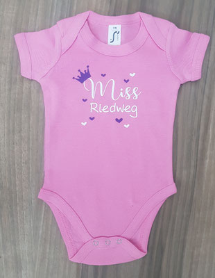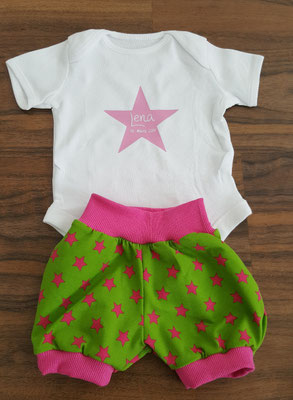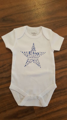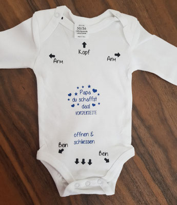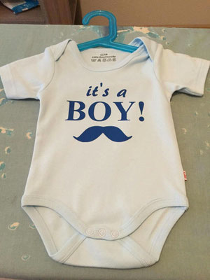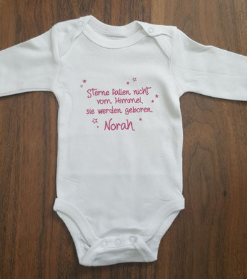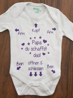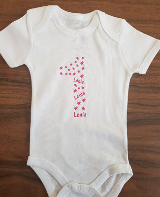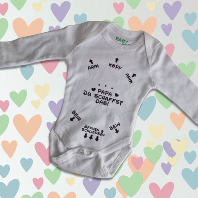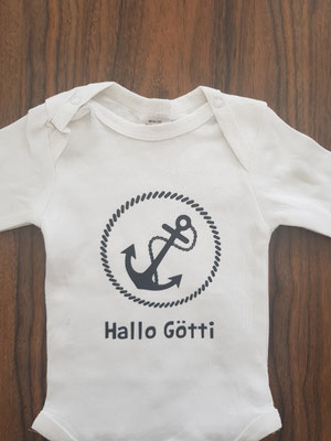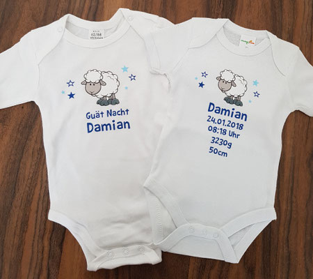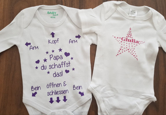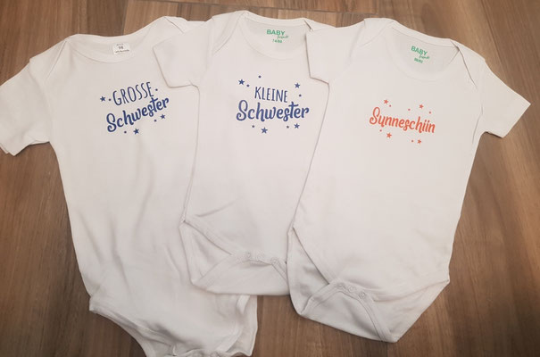 Bodys, Shirts sowie Hüllen fürs Gesundheitsheft und Windeltaschen.
